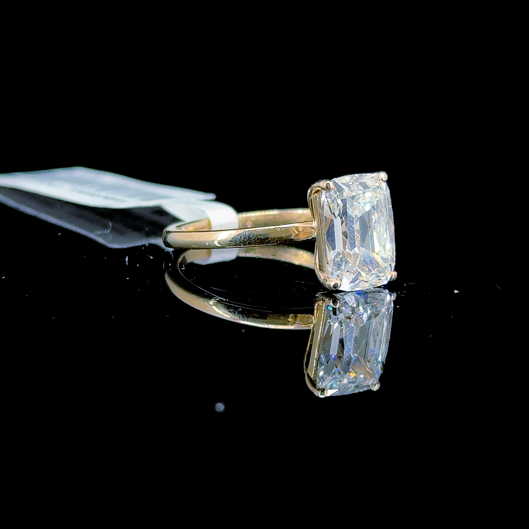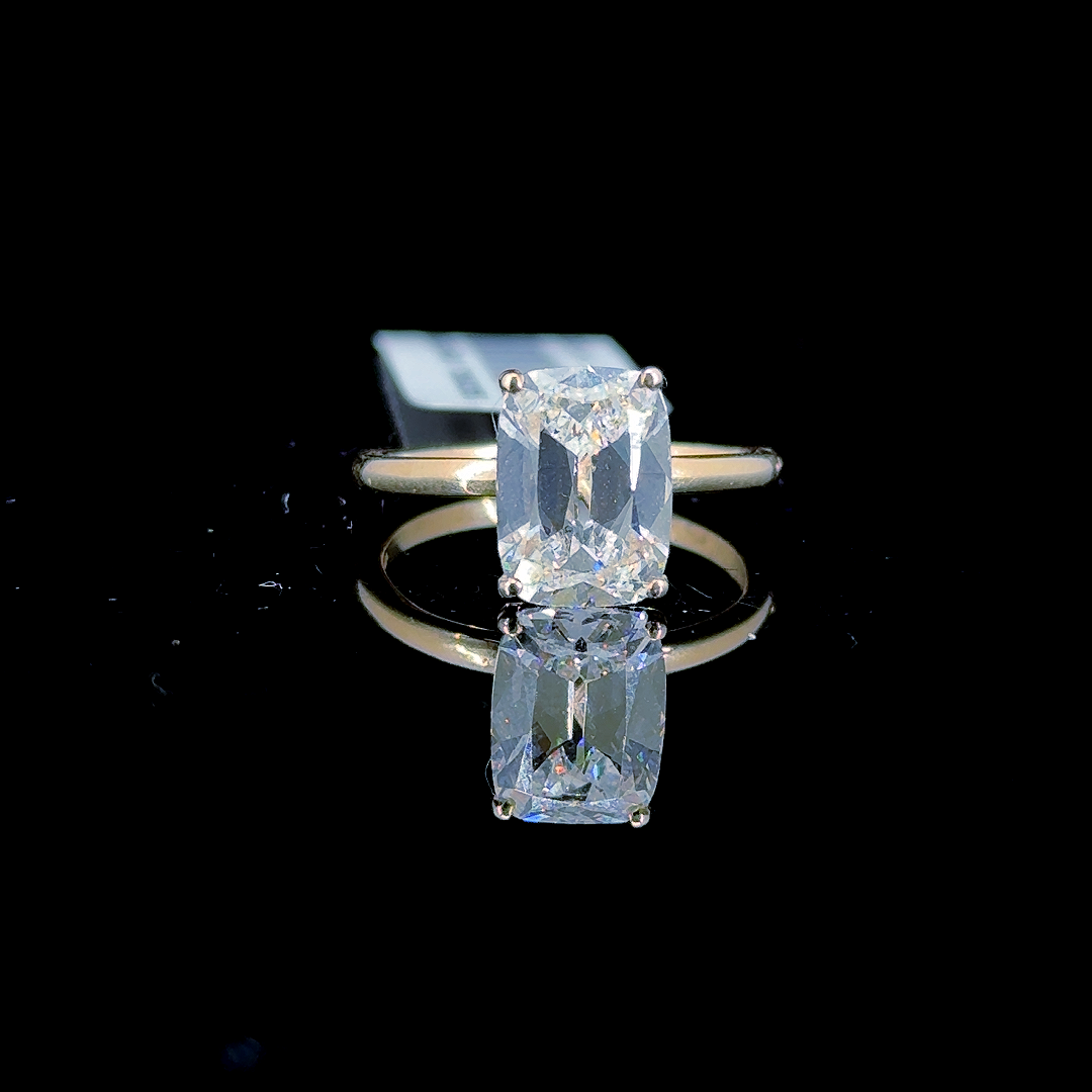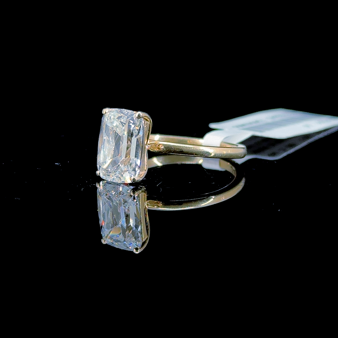 3.01 Carat Cushion Lab Diamond Yellow Gold 3.00 Gram 14K Engagement Ring - Size: 6