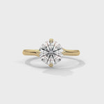 Timeless and elegant, this solitaire engagement ring features a dazzling round brilliant diamond set in warm yellow gold. The classic four-prong design highlights the stone’s brilliance, creating a look that’s effortlessly refined and forever in style.
